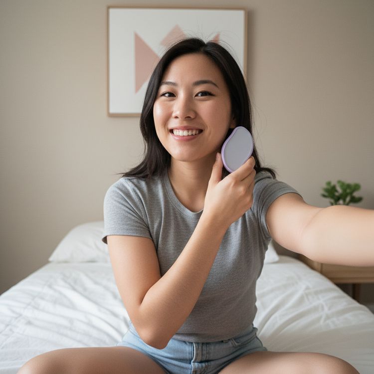 Just use light pressure and circular motions. Most customers with sensitive skin report less irritation compared to shaving or waxing.