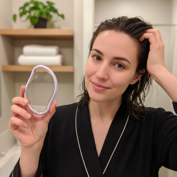 Glissea™ uses a premium micro-crystal smoothing surface that gently buffs hair down at the root level while exfoliating dead skin.